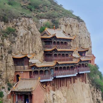 建于北魏时期,悬挂在陡峭的峭壁之上,被誉为“世界九大奇迹之一”。