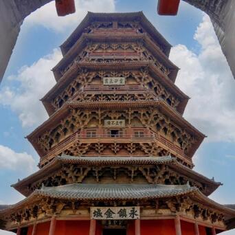 高达67米的应县木塔没有使用一颗钉子建成,斗拱交错,远看宛如一件精美的艺术品。